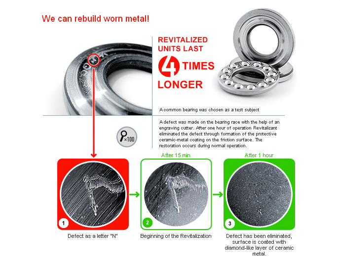 Revitalizant XADO memulihkan logam dimulai dengan melapisi goresan-goresan yang terbentuk pada permukan logam dalam mesin yang saling bergesekan, atom demi atom, membentuk lapisan Ceramic-metal yang mencegah potensi terbentuknya keausan baru. Berbeda dengan aditif oli yang hanya bekerja pada oli yang sudah tercampur dengan aditif, revitalizant XADO akan tetap melindungi hingga 100.000 KM* perjalanan. XADO Revitalizant menjadi lapisan baru yang menyatu dengan permukaan logam, yang tetap terjaga walaupun dilakukan pergantian oli.