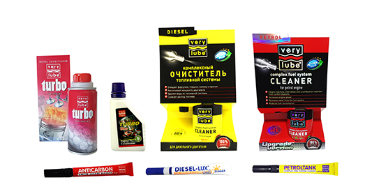 Produk di bawah label Verylube mencakup berbagai jenis produk perawatan mesin kendaraan, mulai dari pembersih sistem bahan bakar, pembersih karbon dalam ruang bakar, hingga aditif oil dengan karbon molekul C60 (fullrenes)